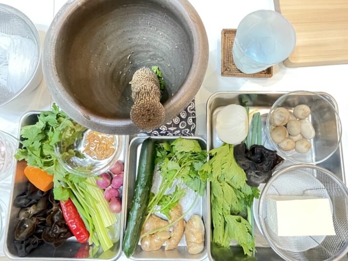 ・トムヤンクン(有頭エビを処理してダシを取っていきます)